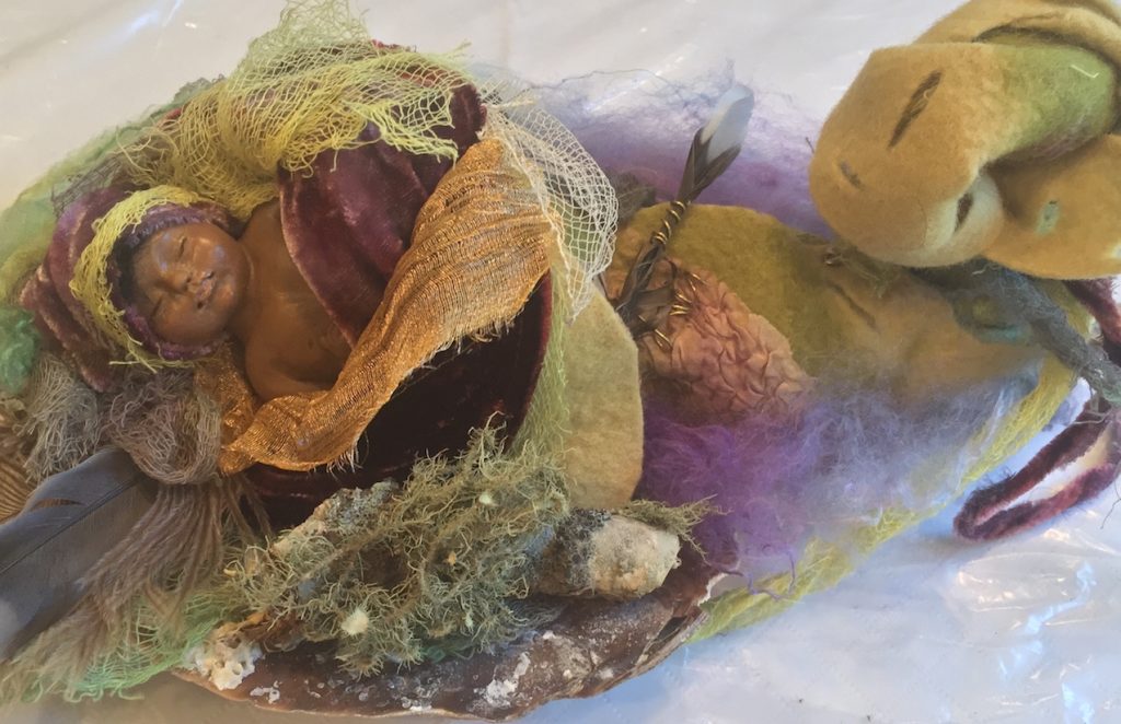 Madeline Beaudry creates figurative sculpture, wearable art made of silk and wool and additionally enjoys painting with various inks and water media. She draws her inspiration from the natural world and the many spirits and sprites that dwell around her home on the Wood River.