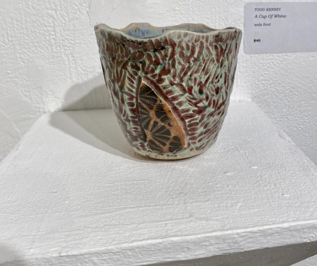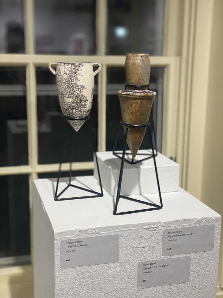 Todd Kenney has always been drawn to construct things from natural materials, but could never find material that was malleable and could last a long time. He discovered clay’s versatile medium and when fired could out last our lifetime with care. Todd is still exploring the medium the depth that clay can be produced is so varied that it is almost impossible to reach every facet. My work is currently based off the look of patterns and flow through the fire.