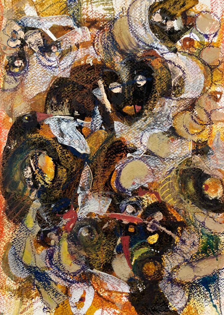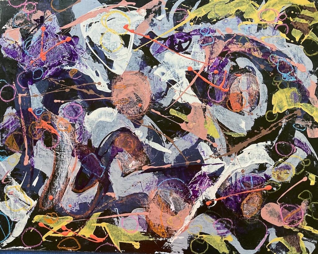 Never a painter, she suddenly began painting abstracts in 2016.